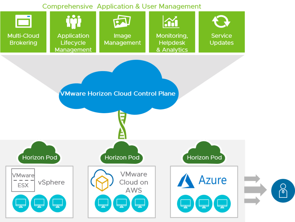 Horizon Cloud is a SaaS based service that allows customers to implement a true hybrid and multi-cloud VDI solution. It can use various resources for desktops and apps capacity – on premise Horizon 7 infrastructure based on vSphere, physical PCs and other unmanaged machines, VMware Cloud on AWS, managed Horizon on IBM Cloud, other VMware Cloud Provider solutions and of course Microsoft Azure. The latter is ramping up recently due to several reasons, notably support for Windows Virtual Desktop.