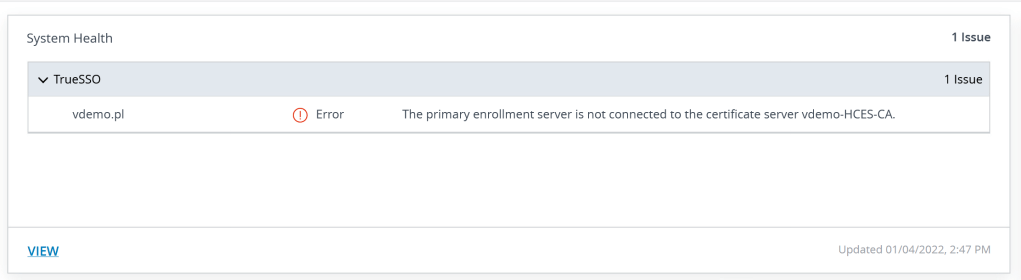 And in the Horizon Admin Console there will be an issue reported with TrueSSO: